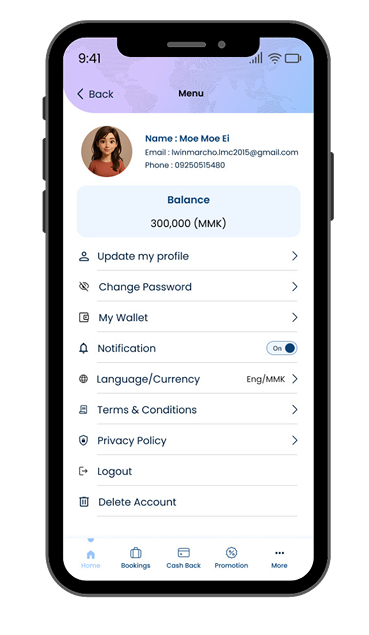 Once you download the app, set up your profile by adding your name, email, and contact number.